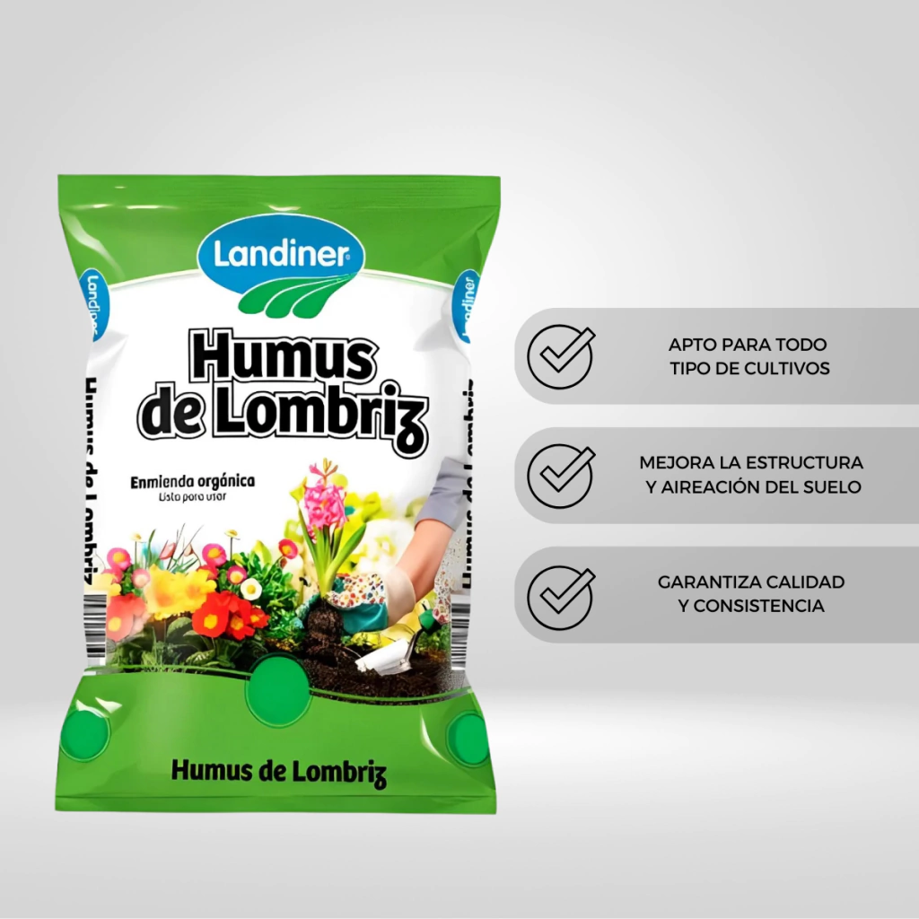 Humus Landiner 10L es un abono orgánico elaborado con lombriz, ideal para enriquecer suelos y sustratos de forma natural. Aporta nutrientes de liberación lenta y microorganismos beneficiosos que promueven raíces fuertes, mejor retención de humedad y crecimiento equilibrado. Es 100% natural, libre de químicos y apto para huertas urbanas, macetas y jardines. Fácil de usar y versátil, asegura plantas sanas y suelos fértiles con resultados sostenibles.